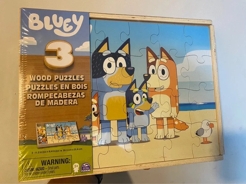 Bluey 3 Wooden Puzzles Kids Chest Storage Box Set | CONDITION - NEW | £29.99